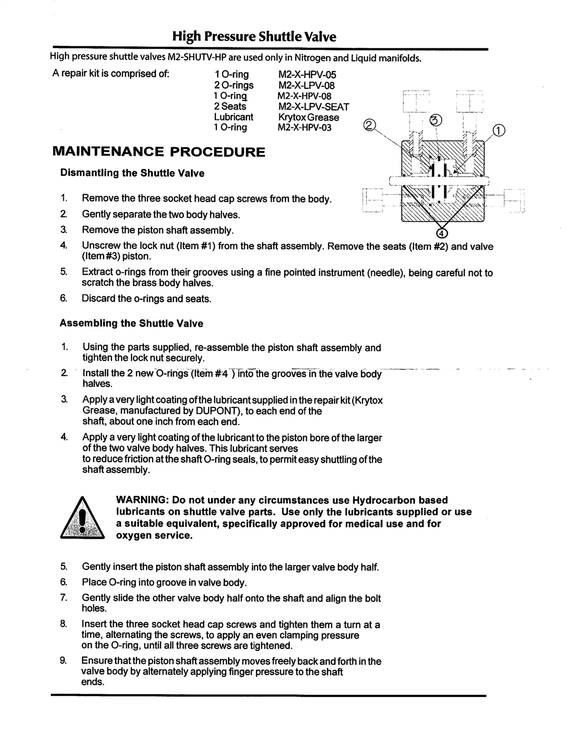 Shuttle Valve Repair Kit for High Pressure Gases